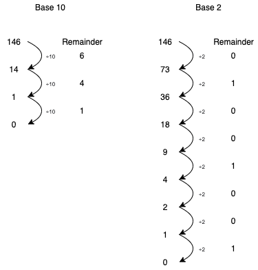 ) to get the remainder when dividing by 2, which tells you whether the current least significant bit is a 0 or a 1. Then, you can use integer division (//
